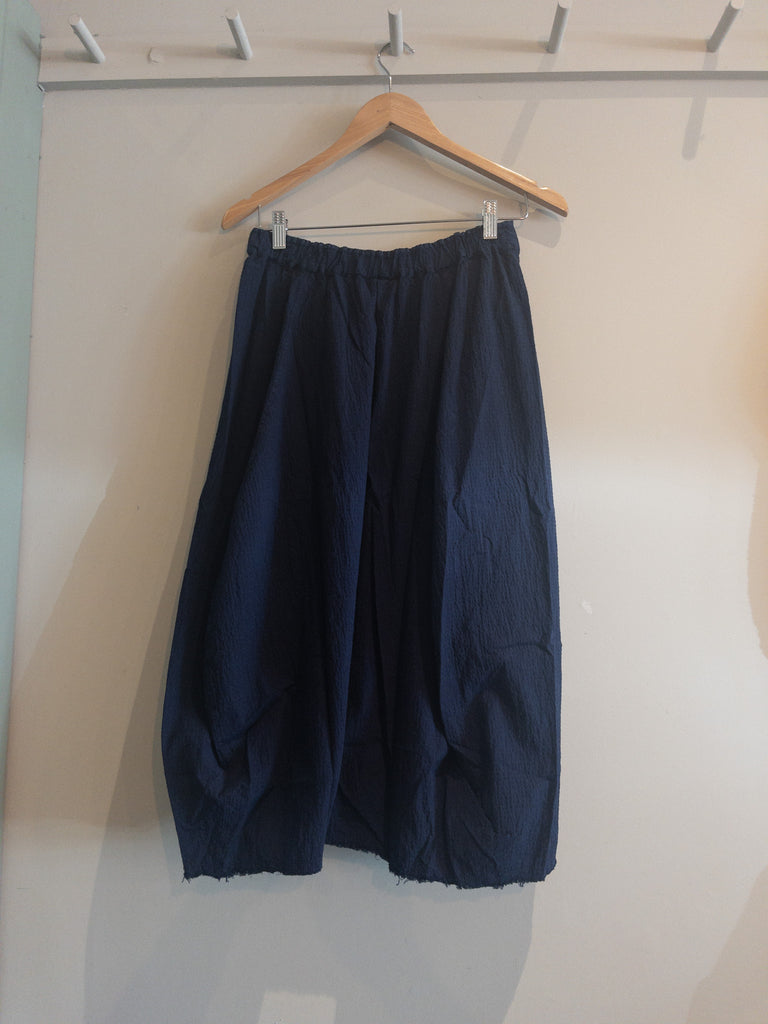 Relaxed midi skirt in a lightweight, textured cotton- blend fabric with a gentle tulip cut, elasticated rear waist, side pockets and raw edged hem. Fully lined.