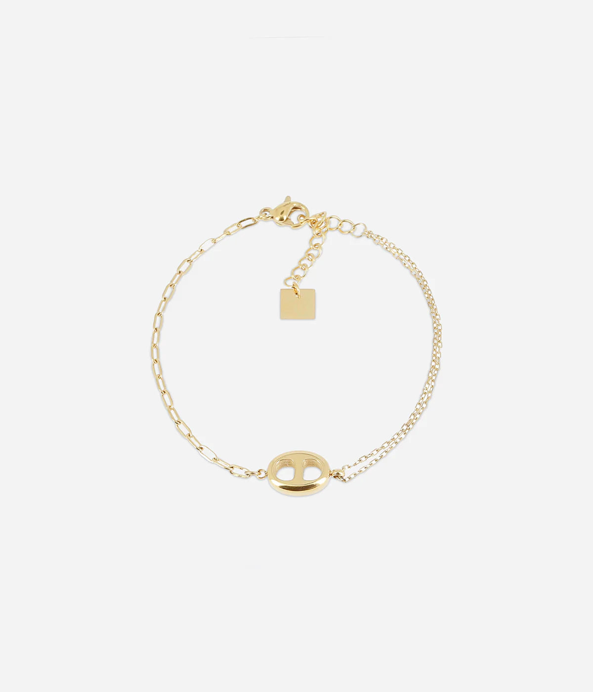 Bracelet in steel gilded with fine gold on which a coffee bean is set.