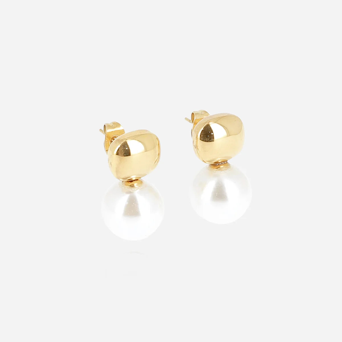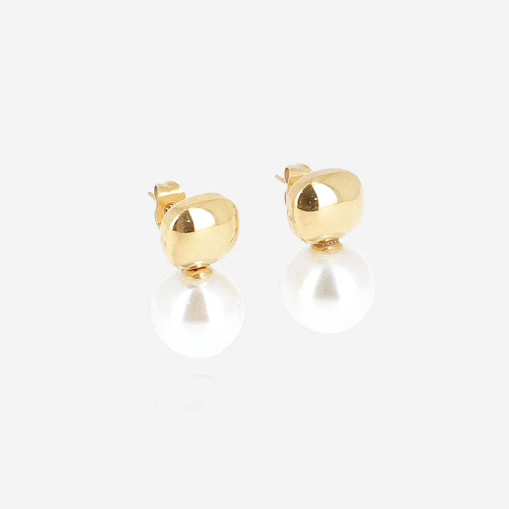 Earrings in gold-plated steel. Set with a pearl and a gold plated steel square.