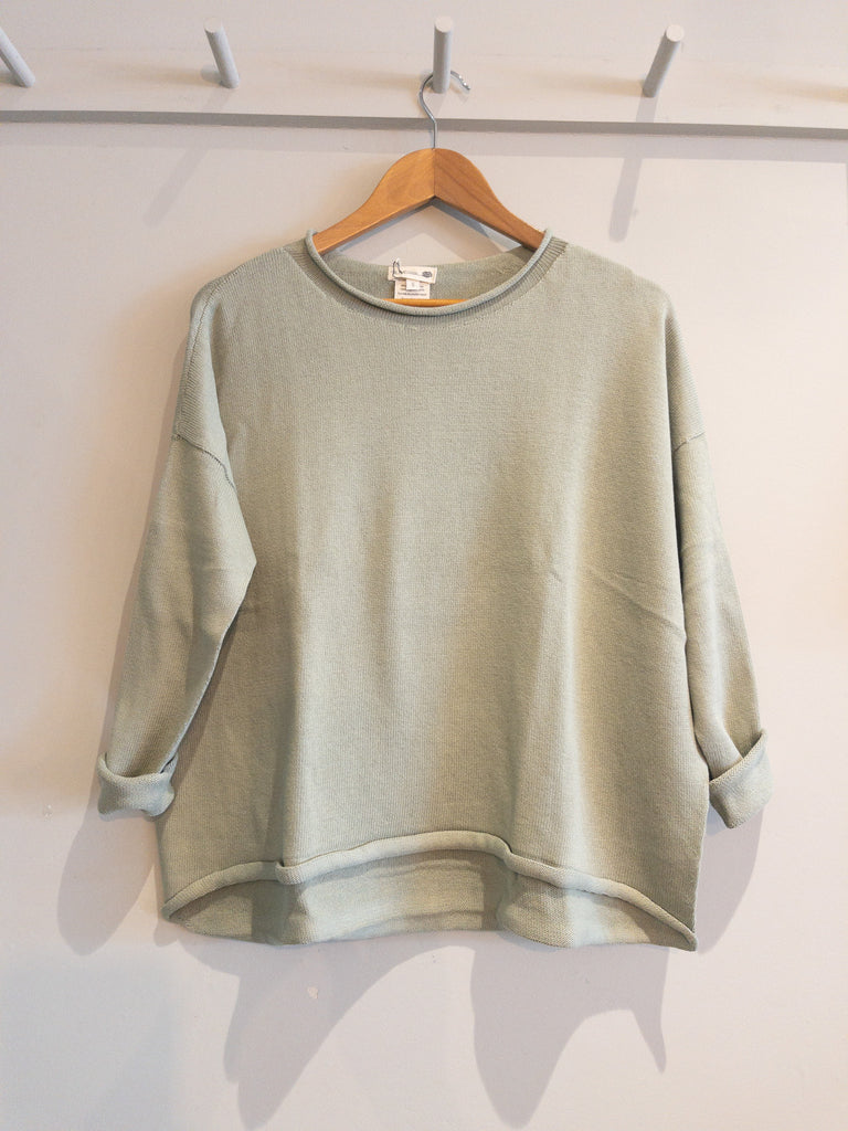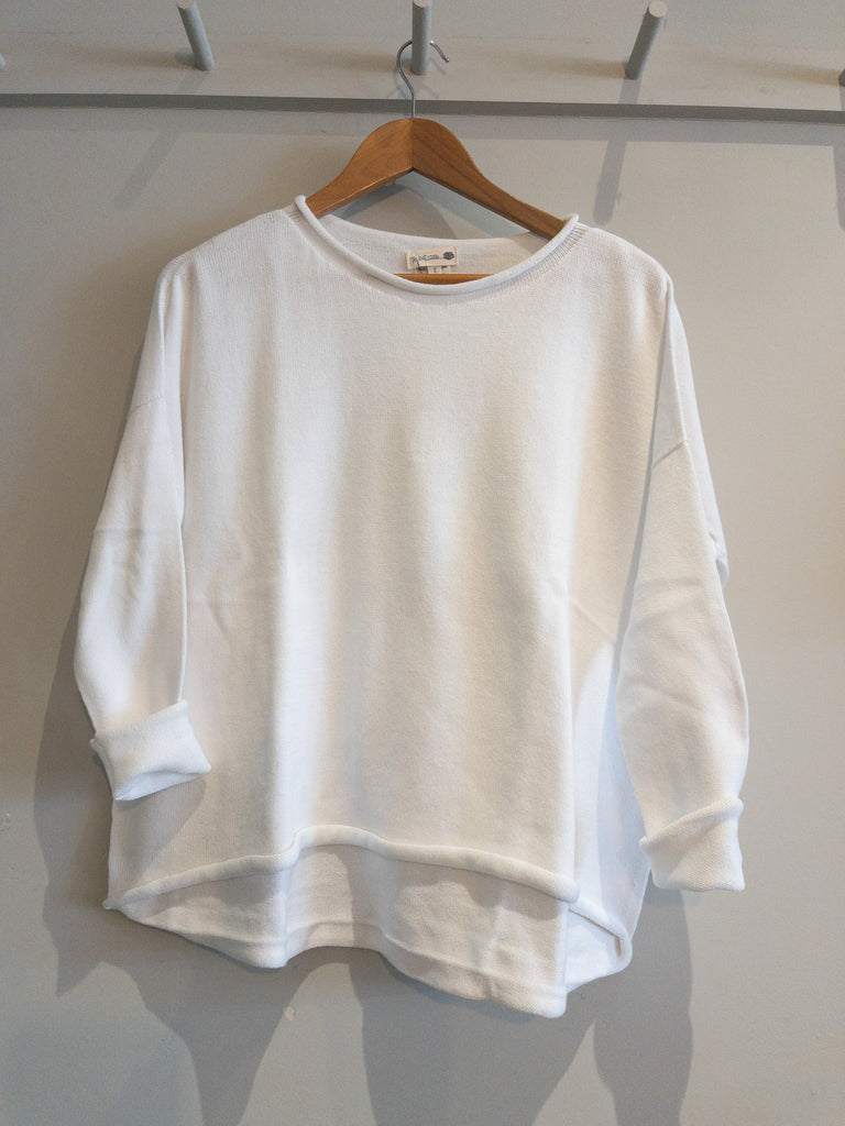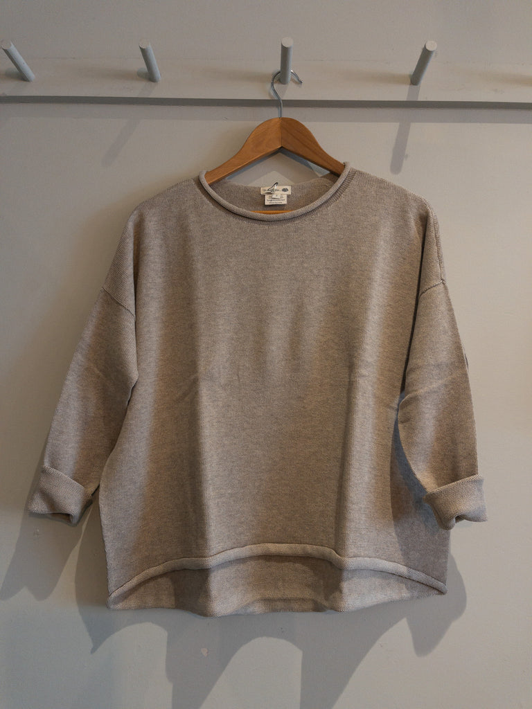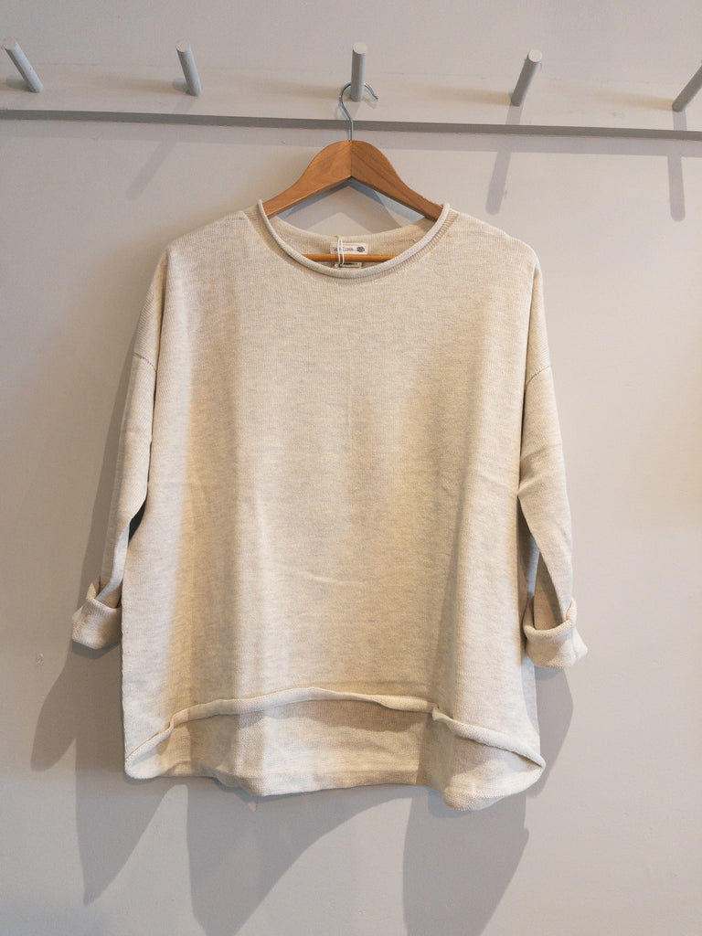 Curled Edge Cotton Jumper - Oatmeal Melange