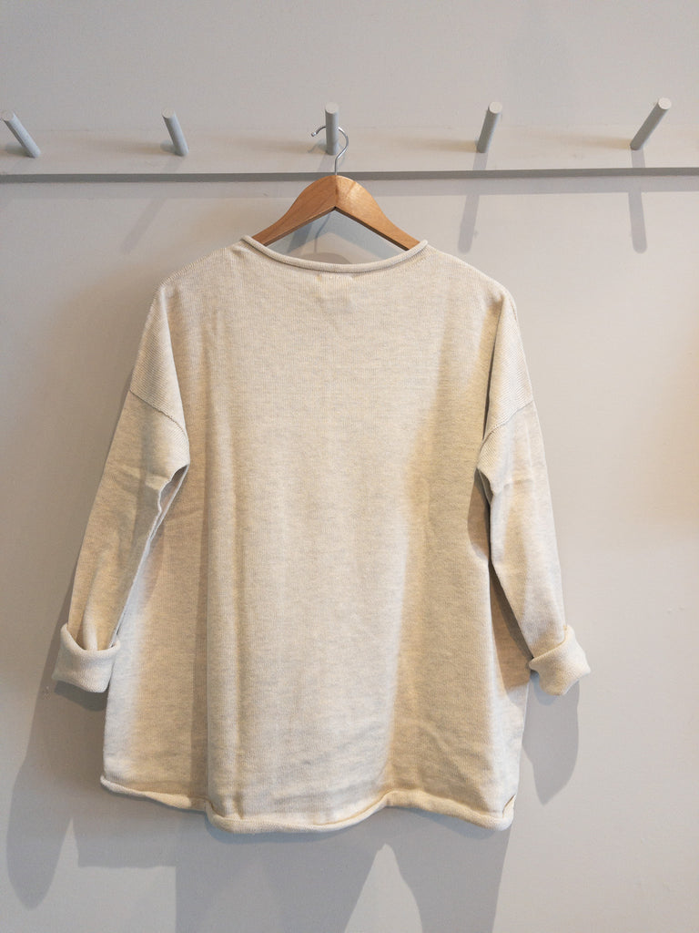 Curled Edge Cotton Jumper - Oatmeal Melange