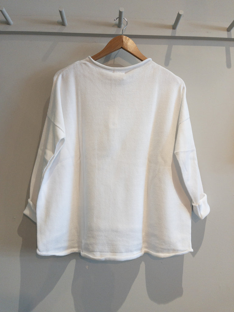 100% organic cotton curled edge knit with a small curl on the neckline and sleeve. Crafted in studio on The Mornington Peninsula. A beautiful locally made artisan product. One Size.