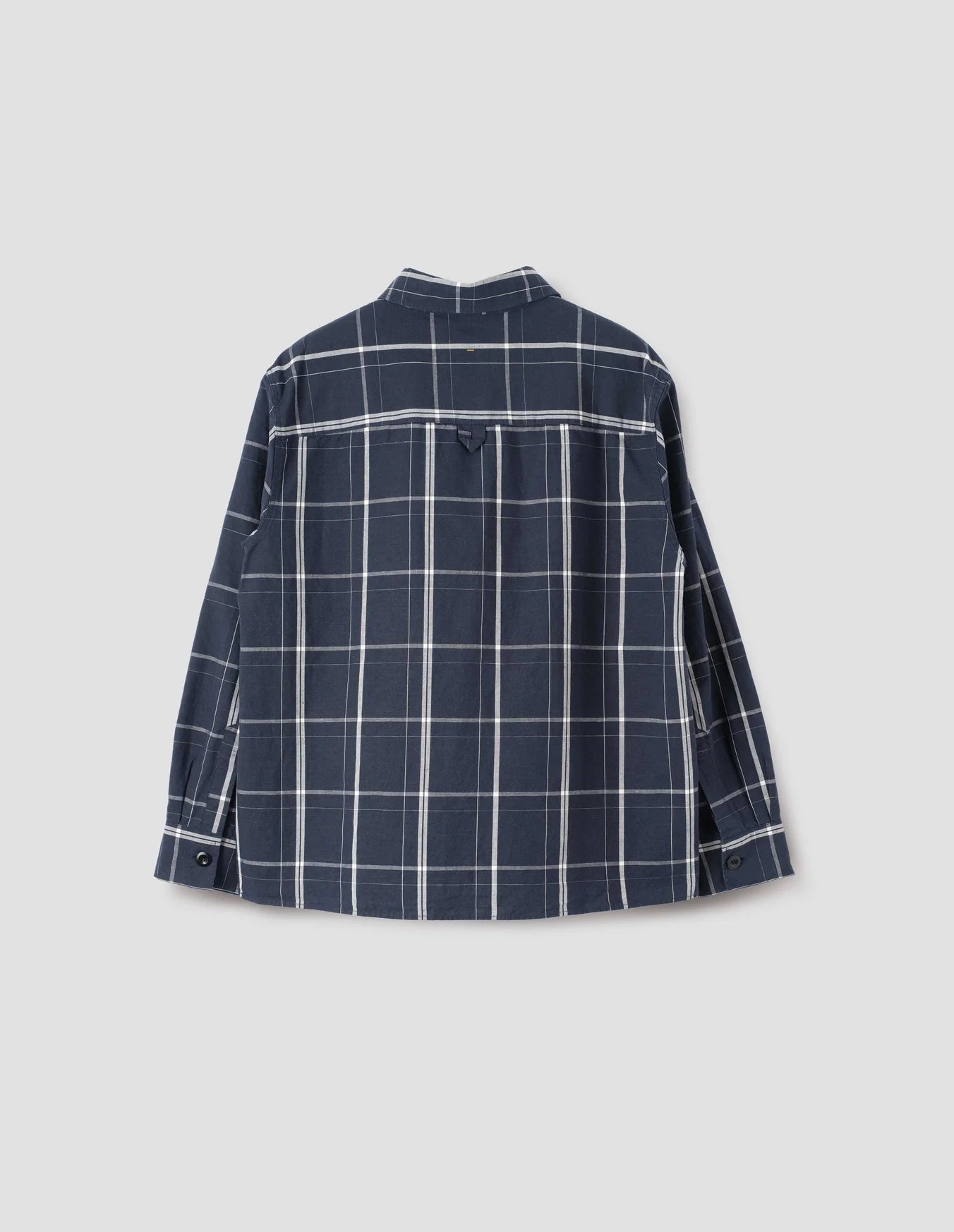 A core MHL. design, the Big Pocket Swing Shirt has a regular cut and is fabricated in dense cotton linen plainweave with a dry hand feel, in colours developed exclusively for MHL. The pull-on shirt is constructed with a raised placket with box stitch detailing and a large, dropped chest patch pocket, and is finished with gusset stitching and a hanger loop detail on back yoke.