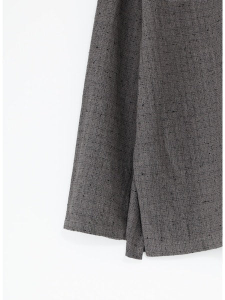A fine check pattern fabric made by regularly weaving black threads into a two-color base color. Especially when inserted into a monochrome outfit, it creates visual depth.