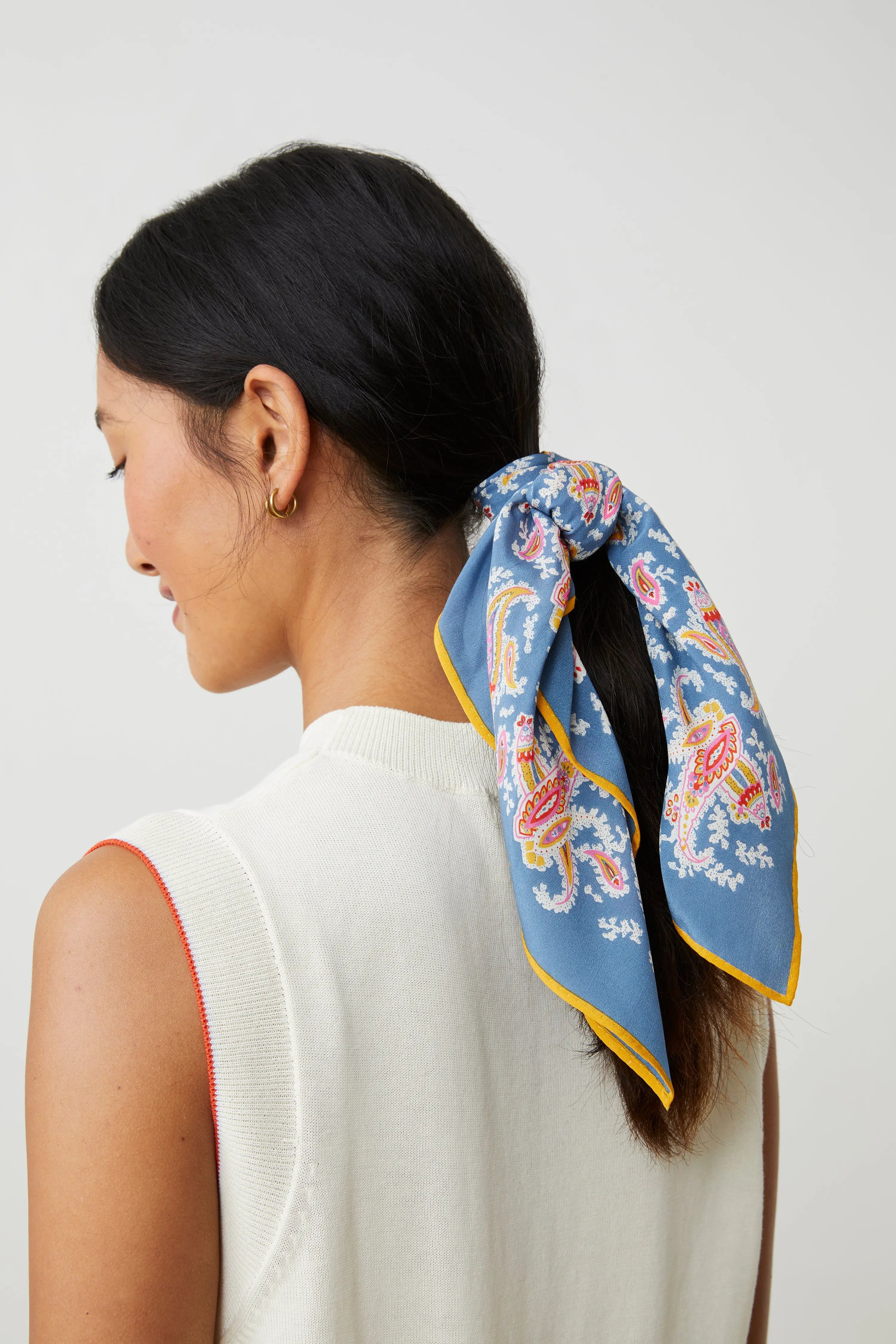 Its square format of 65 x 65 cm offers ideal versatility: tied around the neck, worn in the hair or as a bag accessory, it lightly accompanies everyday movements.